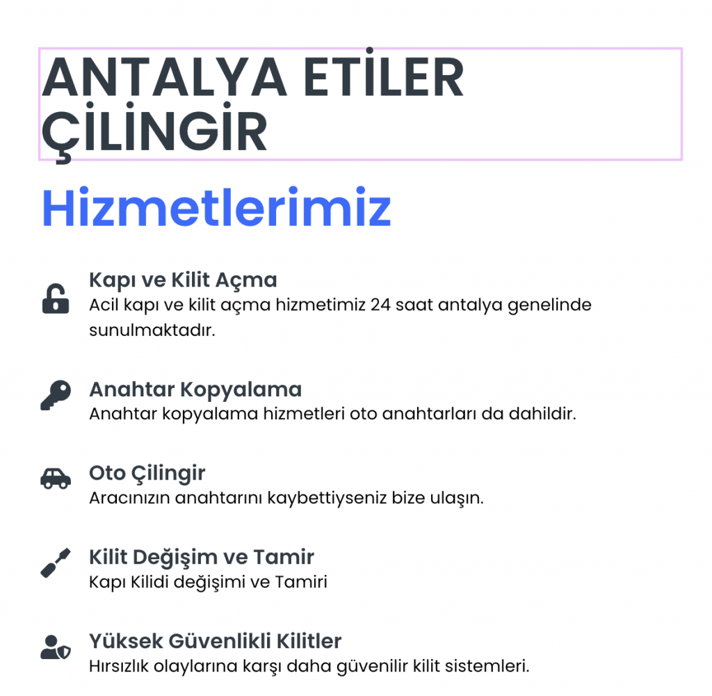 Acil durumlarda, ETİLER MAHALLESİ En Yakın Çilingir hizmetimizle, kapınızı açmak için en kısa sürede yanınızda oluyoruz. Zaman kaybetmeden yardım almak için hemen arayın!